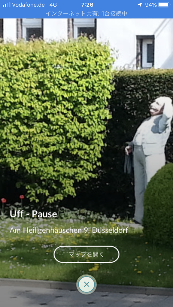 2019-02-24 ポケストップ 空を見上げるおじさん ポケストップ ライン川の西側に、住宅地があります。 その庭に、「空を見上げるおじさんの像」があり ポケストップになっています。 空を見上げるおじさん 写真 ポケストップ 空を見上げるおじさん 実際の周りの感じは、こんな感じです。 ポケモンGo ドイツでポケ活中! これから新緑の季節。 もっと木々が緑っぽくなっていくと思います。